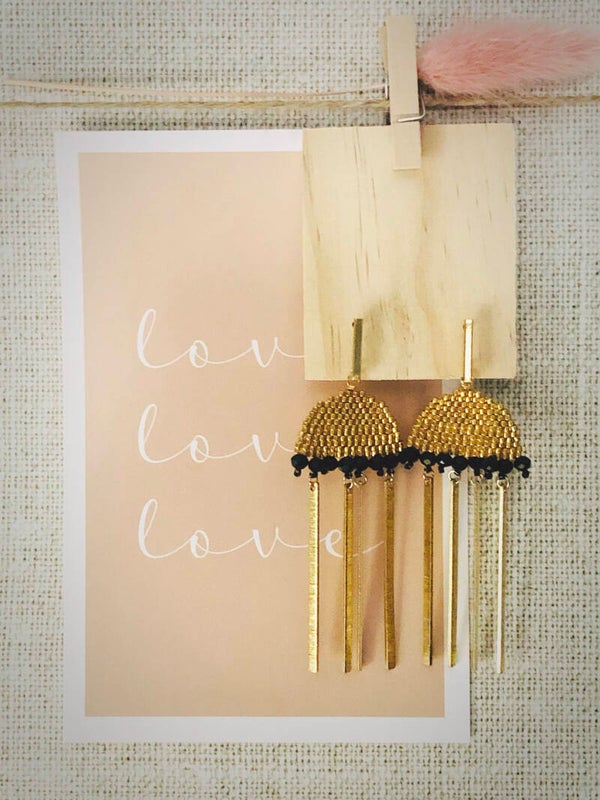 Uniek design in vorm van een parapluutje. Kleine Japanse Miyuki zaadkralen handgeweven met facetkralen en messing stalen bedels.