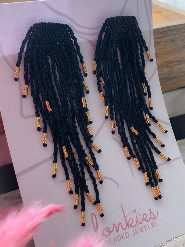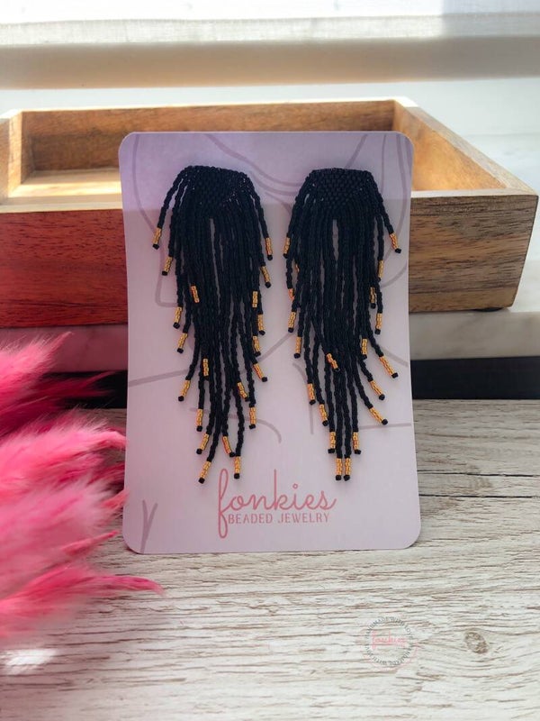 Honderden kleine Japanse Miyuki kralen werden één per één aan elkaar geregen om deze zwierige statement oorbellen te maken. Een eyecatcher op elk feest, festival of statement overdag.